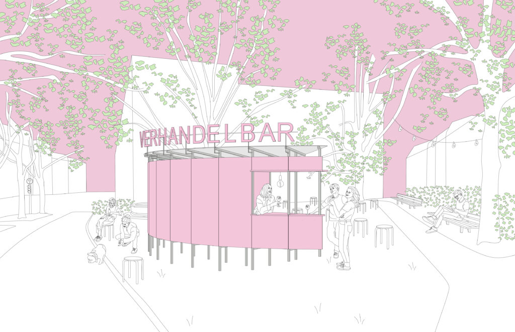 Die VerhandelBar kann man sich als einen Pavillon mit Ausstellungswand und